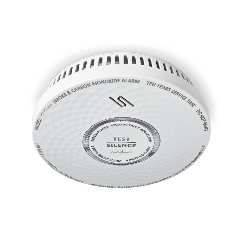 Nedis DTCTCS10WT Rook- En Koolmonoxidemelder Batterij Gevoed Batterijlevensduur Tot: 10 Jaar En 14604 / En 50291 Met Testknop 85 Db Abs Wit